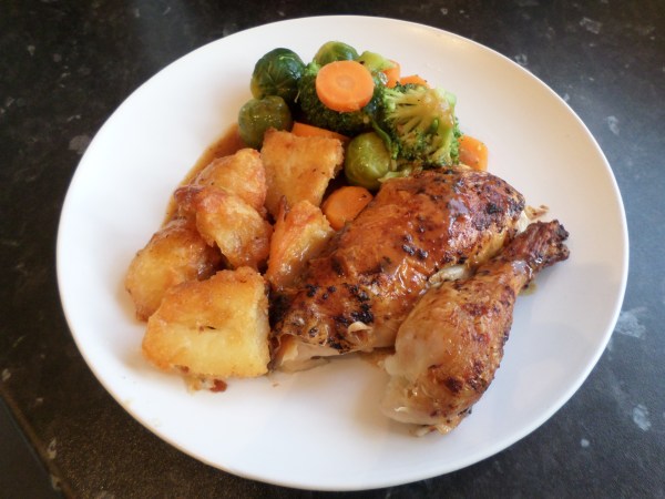 After an hour and thirty minutes in the oven, I took it out of the oven and left it to rest with tin foil and a clean towel over while I prepared the gravy, potatoes and veg.