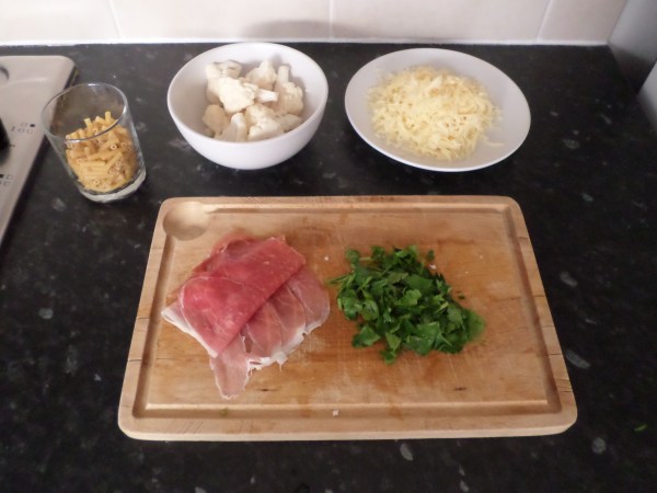 1. Start to boil the macaroni. Add the cauliflower to this later.